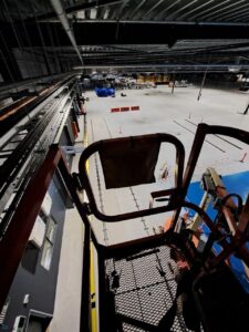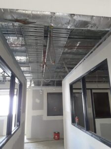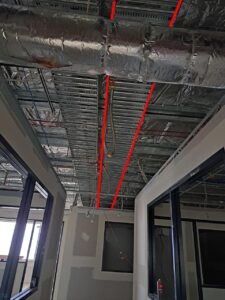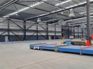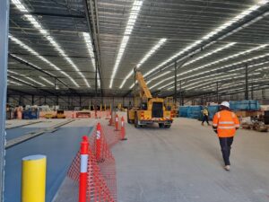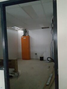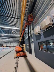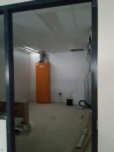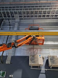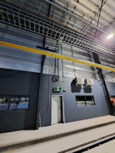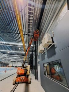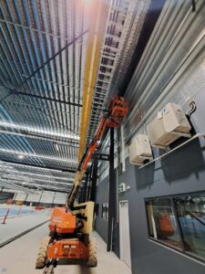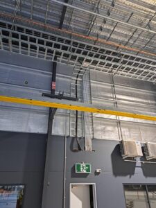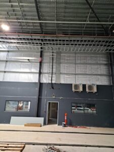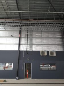 As this was a still-under-construction warehouse, we had the opportunity to fit the infrastructure before the internal office walls were constructed which made the installation slightly easier. It was still a challenge as the roofline was approximately 10m high.