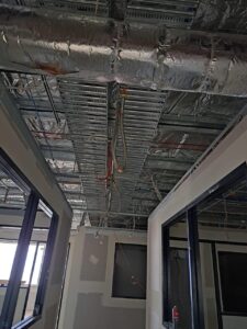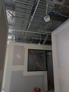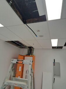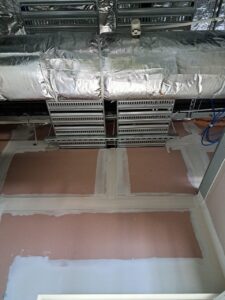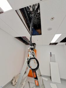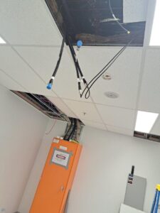 Once we had the cabling installed it was a matter of following the installed duct through to the ceiling of the comms room and then fitting off to the client’s modem.