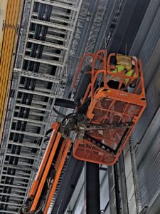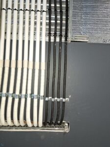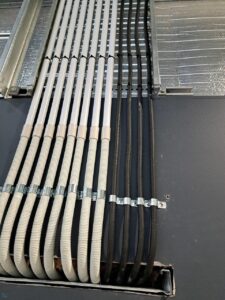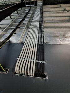 Due to being a very large industrial building and the fact that most of the cabling installation was done at the top of the reach of the boom lift we had on-site, it took just over 18 hours to complete the installation. Working with LDF4-50A cable, no matter the length is complicated due to the sheer diameter of the cable, it doesn’t bend well.
