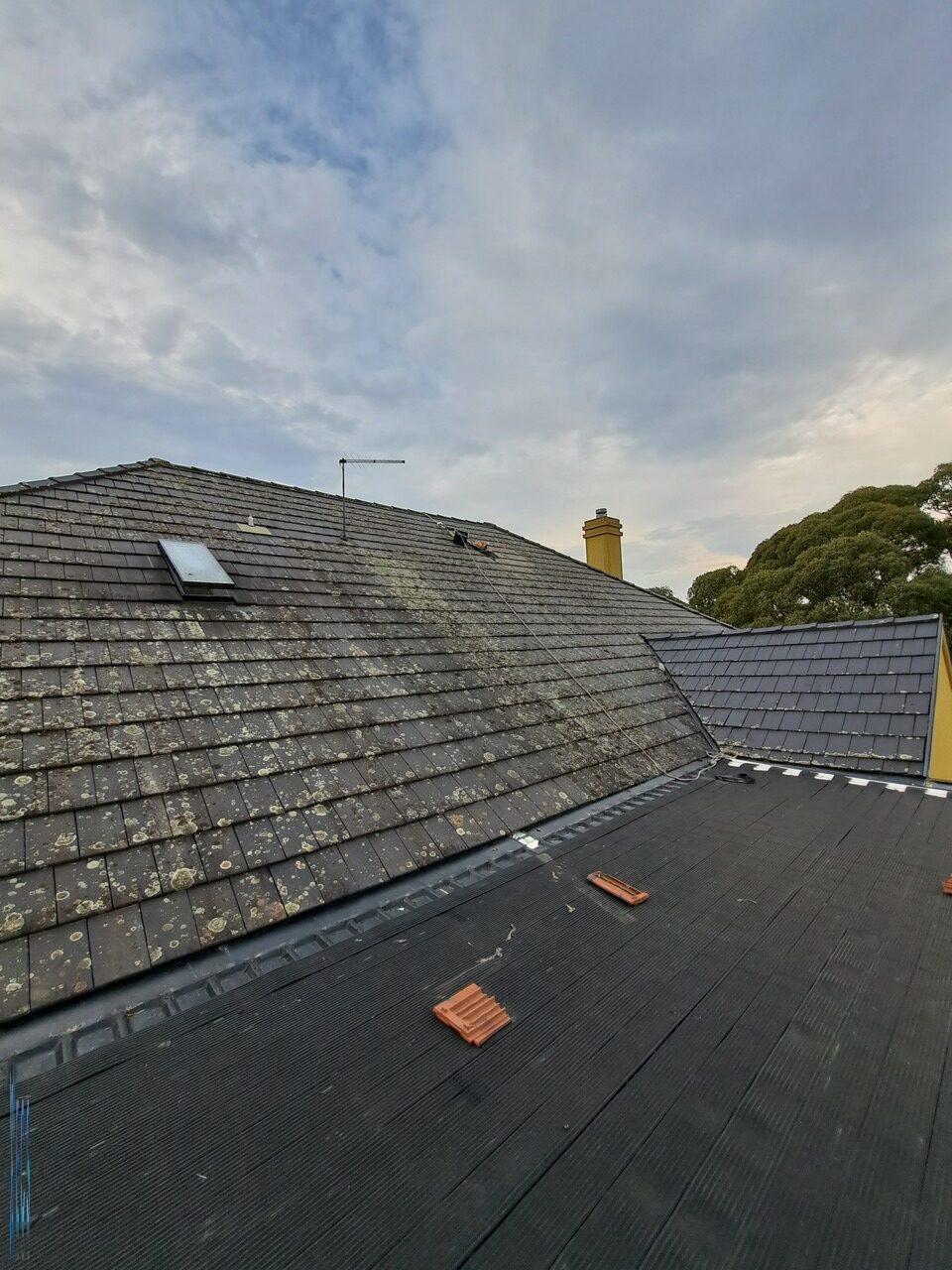 Our technicians are fully licenced & accredited & have the specialized climbing & rope skills and experience to accomplish these kinds of very difficult installs. This install meant that we had to put together a full safety plan & set up roof harness points in a couple of places on this roof for the safety of our technicians. It’s steepness was at approximately 65 degrees.