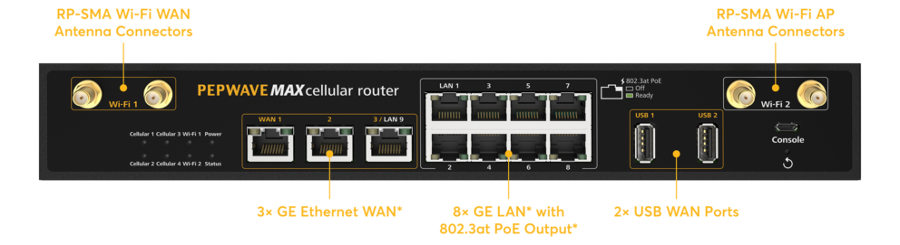 The HD4 MBX is capable of combining the bandwidth of 4 cellular links into an unbreakable, high-speed SD-WAN connection. The HD4 MBX supports up to 8 SIM cards, with room for another 8 with the optional SIM Injector. With up to 16 cellular providers to connect to, spotty coverage will simply not be a problem.