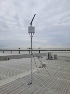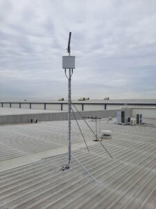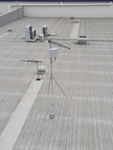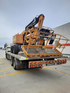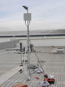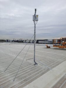 Warehouses of this size generally have an access ladder to the roof area but, with the amount and weight of the equipment that is needed to be able to complete an installation of this size, it is difficult to carry it via this method. Therefore, as Essential Communications Services hold the appropriate WorkSafe licenses that enable us be able to legally use boom lifts, we hired a 45ft (13.5m) reach knuckle boom from our hiring agents Allcott Hire. This way, we were able to get all the equipment to the roof area where we were working safely.