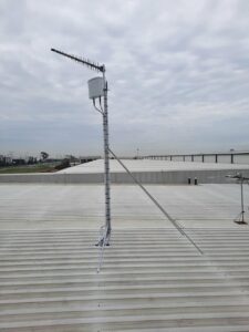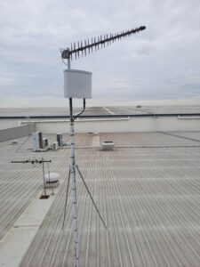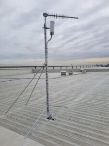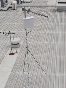 The equipment mounted on the roof consists of a 3m galvanized tin roof mast with an RFI Technology Solutions Wideband 8-12dBi 3G+4G+4GX LPDA Antenna as well as a Telco Antennas XPOL MiMo 3G+4G+4GX Panel Antenna. The LPDA antenna is connected directly to @Cel-Fi by Nextivity Cel-Fi Go Stationary (GO31) Telstra mobile voice repeater via a single run of Telco Antennas Super Low Loss LCU400 Cable Assembly with a Phaseblocker N Male to Female Lightning Arrester – up to 6GHz. The Telco Antennas XPOL MiMo 3G+4G+4GX Panel Antenna is connected to the clients Peplink Balance 30 Modem/Router via 2 x runs of Telco Antennas Super Low Loss LCU400 Cable Assemblies with 2 x Phaseblocker N Male to Female Lightning Arresters – up to 6GHz.