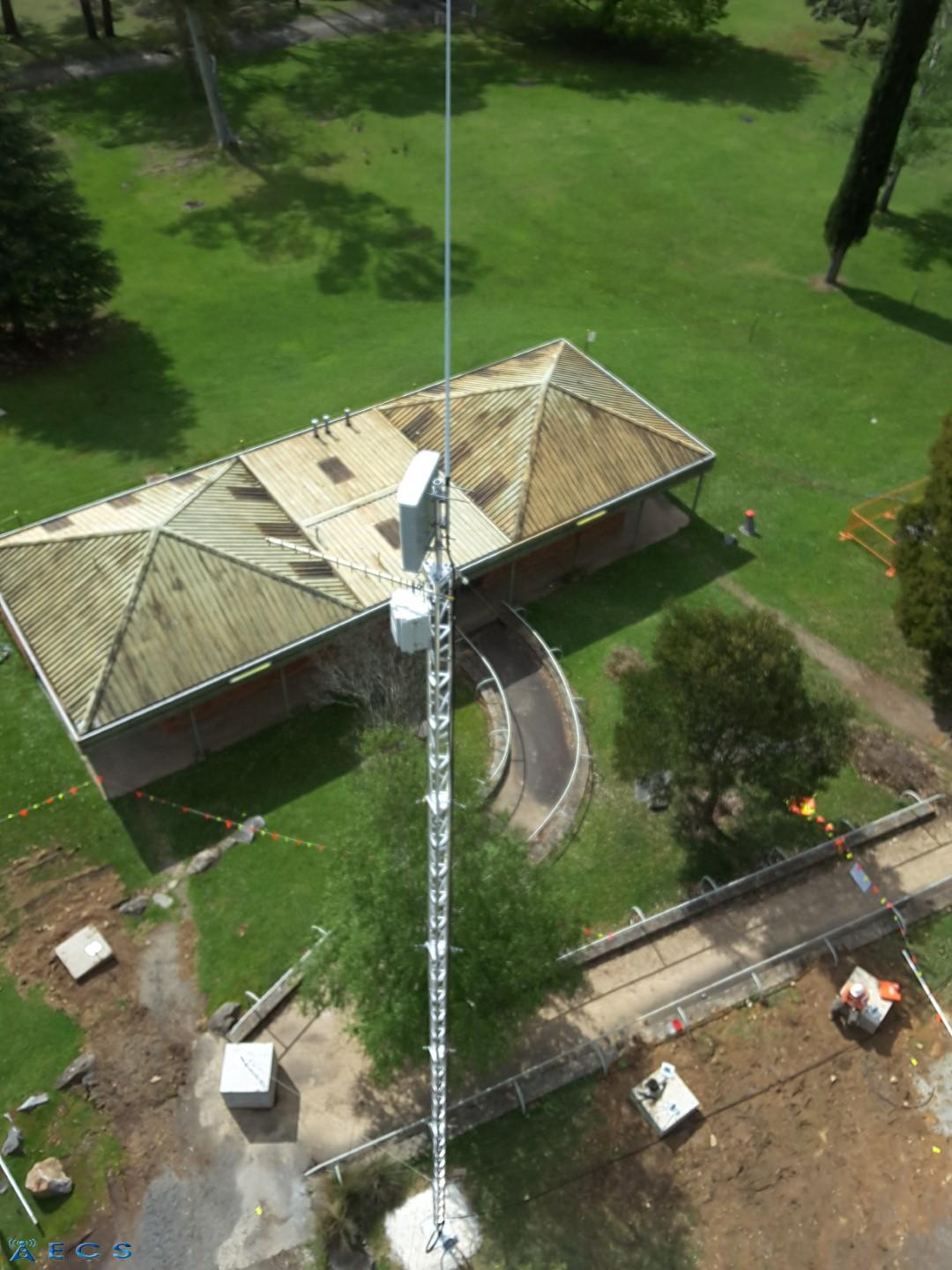 This 18m communications tower has been a long time in the planning given the very limited area for which we had to work with, thus the 3 ton concrete (Kelly) blocks buried in the ground. Essential Communication Services are very grateful to the extra assistance provided by our supply and engineering partner Telco Antennas to enable this to happen.