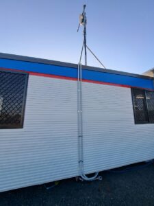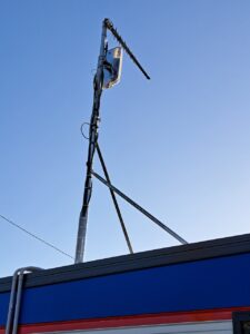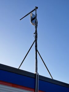 A Panorama Antennas Ltd 4×4 4GX/5G MiMo antenna was mounted atop a Telco Antennas 3m Galvanized Serviceable Mast. As there was also an issue with mobile telephone signal coverage, an RFI Antennas 12dBi 3G/4G/4GX LPDA Antenna was mounted to the same serviceable mast.